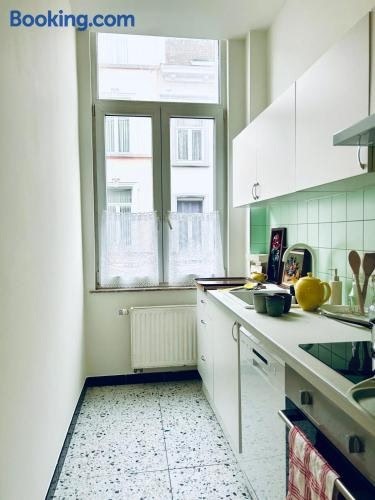 Chaleureux appartement aux Marolles is goed gelegen in het centrum van Brussel en heeft een terras. Dit appartement biedt accommodatie met een balkon en gratis WiFi.