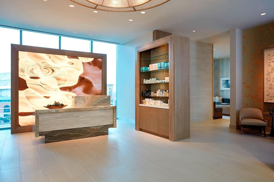 Marriott Marquis biedt een buitenbad met een rivier in de vorm van Texas die het hele jaar door is geopend en ligt in het hart van Houston, Texas, op slechts een steenworp afstand van conferentiecentrum George R. Brown en Discovery Green Park.