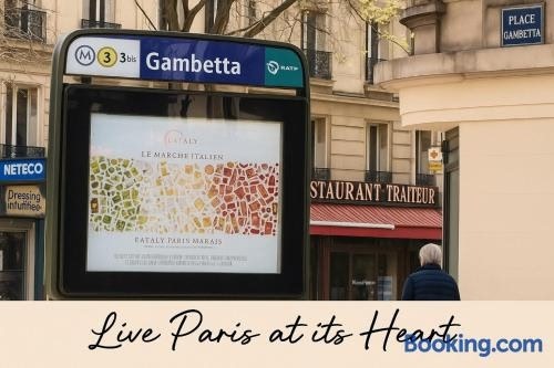 Métro Gambetta ligt in Parijs, op 3,6 km van Opéra Bastille en 4 km van Centre Pompidou, en biedt accommodatie met gratis WiFi, airconditioning en toegang tot een tuin.