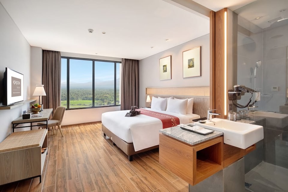 Located in Banyuwangi, Kokoon Hotel Banyuwangi is in the city center and in the mountains. Ketapang Ferry Port and Gilimanuk Harbor are worth checking out if an activity is on the agenda, while those looking for area attractions can visit Banyuwangi Park and Umbul Pule. This smoke-free hotel features a full-service spa, an indoor pool, and a restaurant. Free WiFi in public areas and free self parking are also provided. Additionally, a fitness center, a bar/lounge, and a sauna are onsite. Kokoon Hotel Banyuwangi offers 163 air-conditioned accommodations with fireplaces and minibars. Rooms open to balconies. These individually decorated and furnished accommodations have separate sitting areas. LCD televisions come with cable channels and Netflix. Bathrooms include slippers, complimentary toiletries, and hair dryers. Guests can surf the web using the complimentary wireless Internet access. Business-friendly amenities include desks and safes. Additionally, rooms include complimentary bottled water and coffee/tea makers. A nightly turndown service is provided and housekeeping is offered daily. An indoor pool and a children's pool are on site. Other recreational amenities include a sauna and a fitness center.