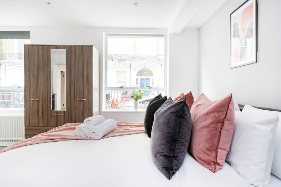 dit appartement is gelegen in de wijk Centrum van Londen in Londen. De accommodatie heeft een gunstige ligging vlak bij de luchthaven en vlak bij een metrostation. Een aantal culturele hoogtepunten zijn bijvoorbeeld Brits museum en Royal Opera House. Wie daarnaast graag de winkelstraten afstruint, kan zich bij Marylebone High Street en Oxford Street uitleven. Zin om van een evenement of wedstrijd te genieten? Kijk dan eens wat er bij Royal Albert Hall of Emirates Stadion op het programma staat. Dicht bij dit appartement met een rookverbod kun je je bezighouden met activiteiten en attracties zoals shoppen bij een outlet. Te voet bent u al in 3 minuten bij Marylebone High Street of in 8 minuten bij Oxford Street. Verken andere wijken en zie meer van Londen met de metro vanaf Regent's Park Underground Station, op 8 minuten lopen, of Great Portland Street Underground Station, 9 minuten verderop. Tot de voorzieningen bij dit vakantiehuis met 3 slaapkamers en 2 badkamers behoren een zitruimte, een eetruimte, een draagbare ventilator en een bureau. Je kunt gebruikmaken van voorzieningen als gratis wifi en smart-tv. Enkele aanwezige voorzieningen in de badkamer zijn een haardroger, gratis toiletartikelen en handdoeken. Bereid uw eigen gerechten in de keuken, die is voorzien van een oven, een kookplaat, een vriezer en benodigdheden als een koffiezetapparaat, een waterkoker en een magnetron. En u hoeft geen extra kleding in te pakken, want u heeft ook een wasmachine/droger. Andere voorzieningen zijn onder meer beddengoed, een strijkplank, verwarming en kledingkast of kast.